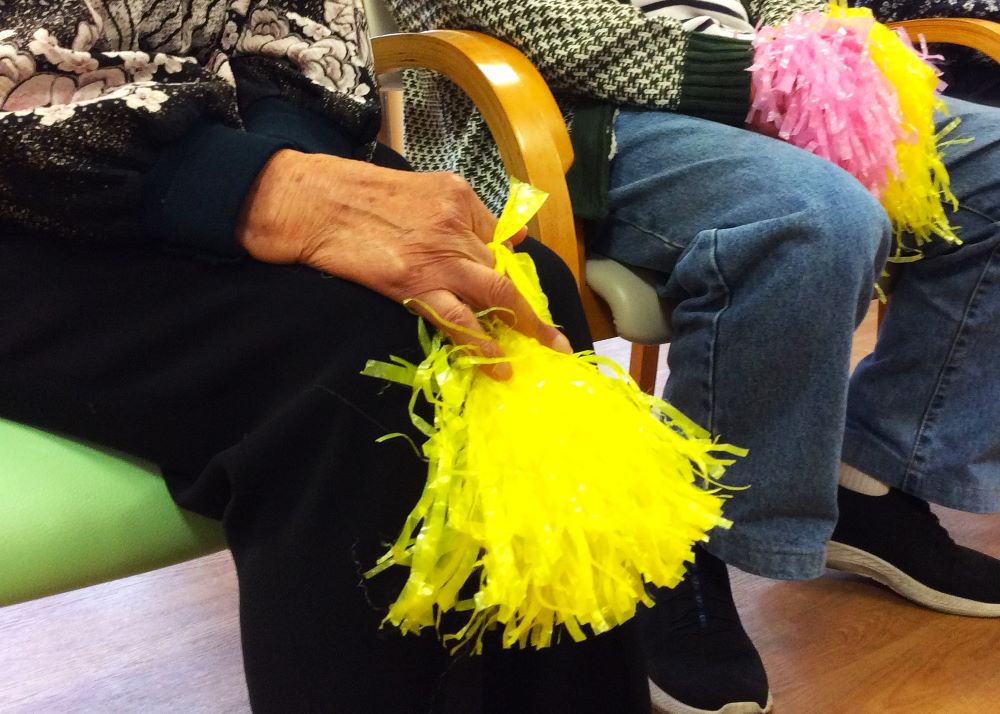 ご利用者様は運動会開催のために「万国旗」の塗り絵や、応援用のボンボン、参加メダルなどを製作し職員と一緒に準備を進めてきました。