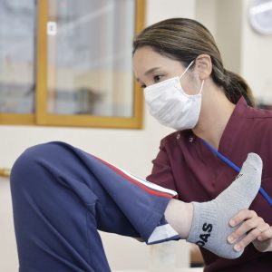 竜宮村松では、日常生活で必要な動作の訓練を行います。たとえば「服を着ること」「靴を履くこと」にも、 いくつもの動作が関わってきます。いくつかの動作のうち1つでもできないことがあると、 その動作を行うことが「大変」「できない」につながっていきます。